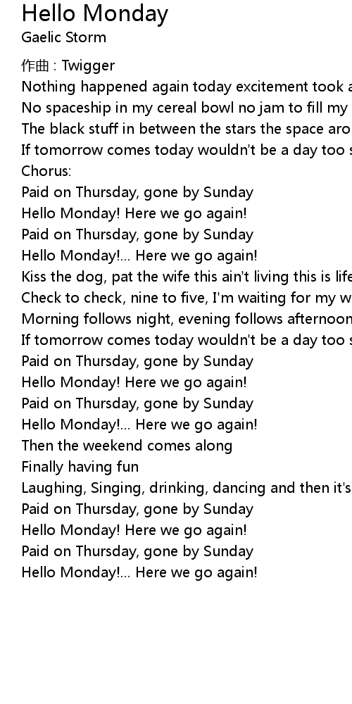 | Check to check, nine to five, I'm waiting for my weekend to come alive | |