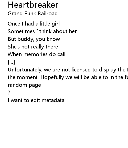 | Unfortunately, we are not licensed to display the full lyrics for this song at the moment. Hopefully we will be able to in the future. Until then, how about a | |