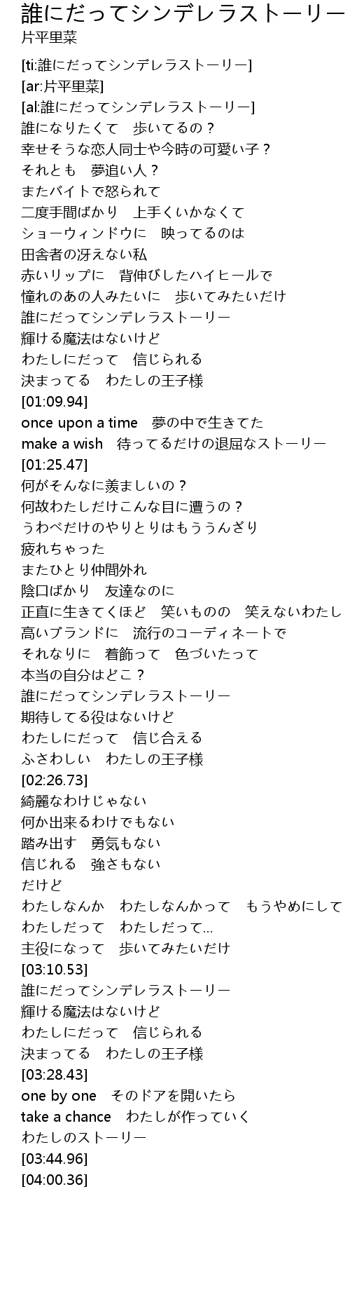| [00:55.17] | 誰にだってシンデレラストーリー |