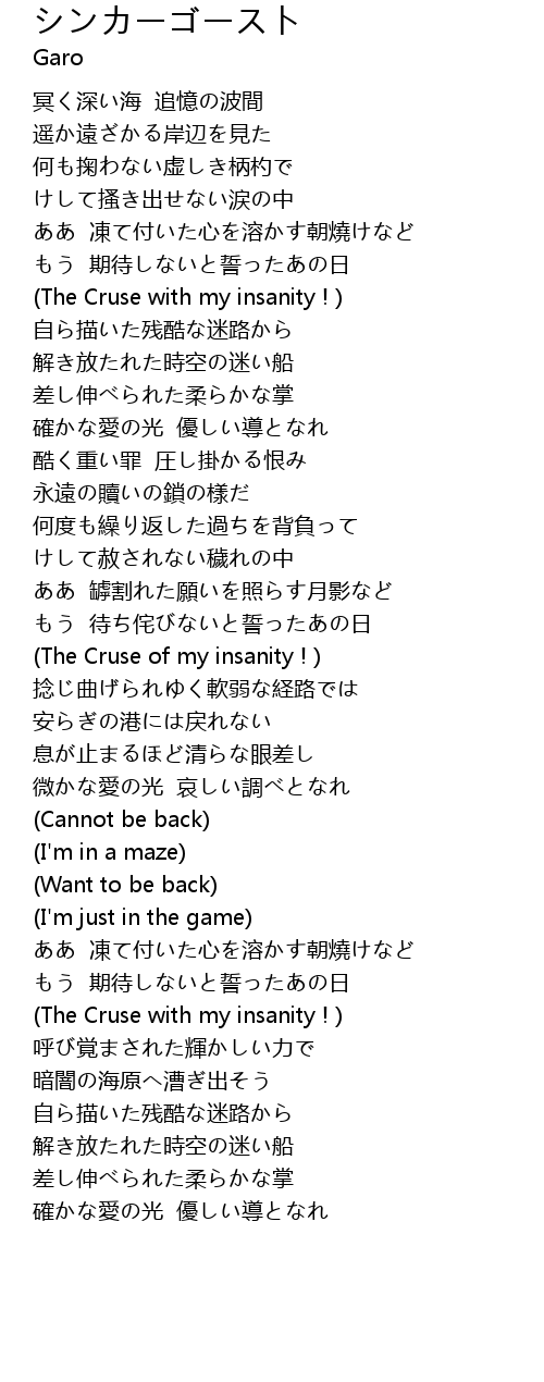 | [00:57.000] | (The Cruse with my insanity ! ) |
