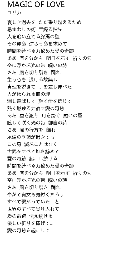 | [01:46.000] | 熱く燃ゆる力宿す愛の奇跡 |
