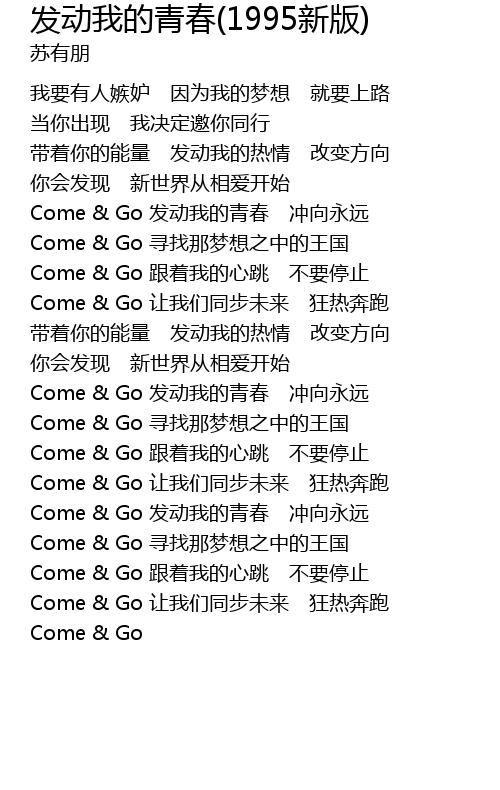 | [02:31.03] | Come & Go 发动我的青春 冲向永远 |