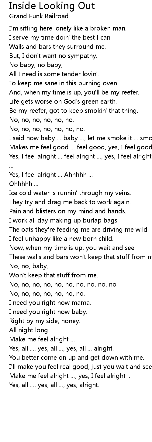 Yes, I feel alright ... feel alright ..., yes, I feel alright ... feel alright ...