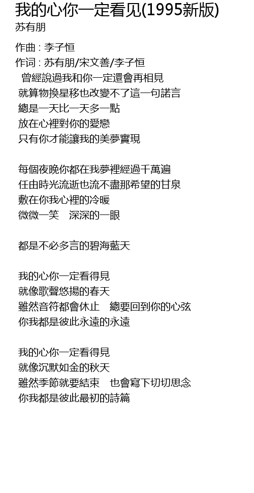 | wǒ de xīn nǐ yí dìng kàn de jiàn | |