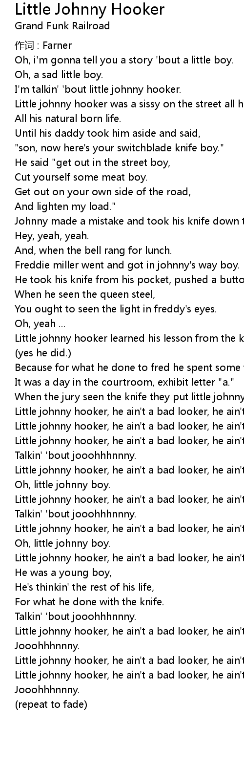 | Little johnny hooker learned his lesson from the knife now you see, | |