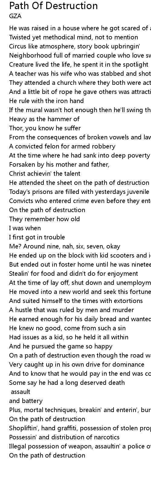 | Plus, mortal techniques, breakin' and enterin', burglary, purse snatchin' | |