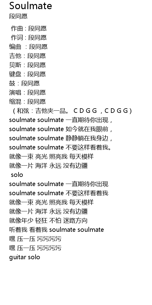 | [00:03.00] | 吉他:段同愿 |