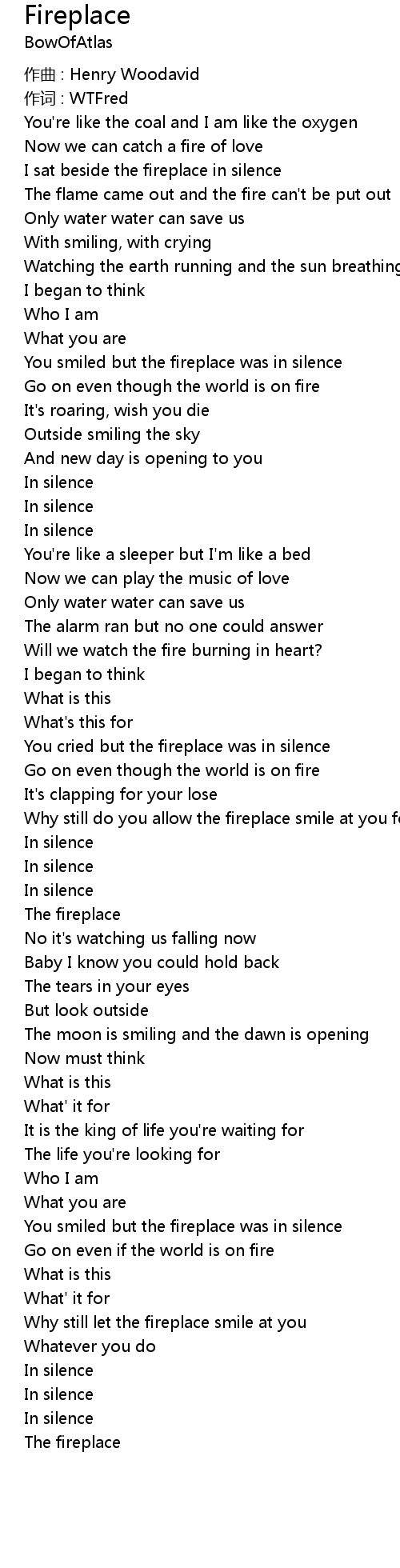 | Song | Fireplace |