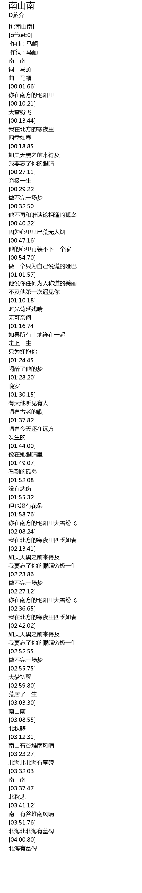 | [03:13.56] | nan shan you gu dui nan feng nan |