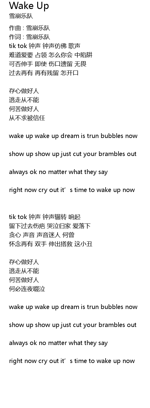| 留下过去伤疤 哭泣归家 爱落下 | |
