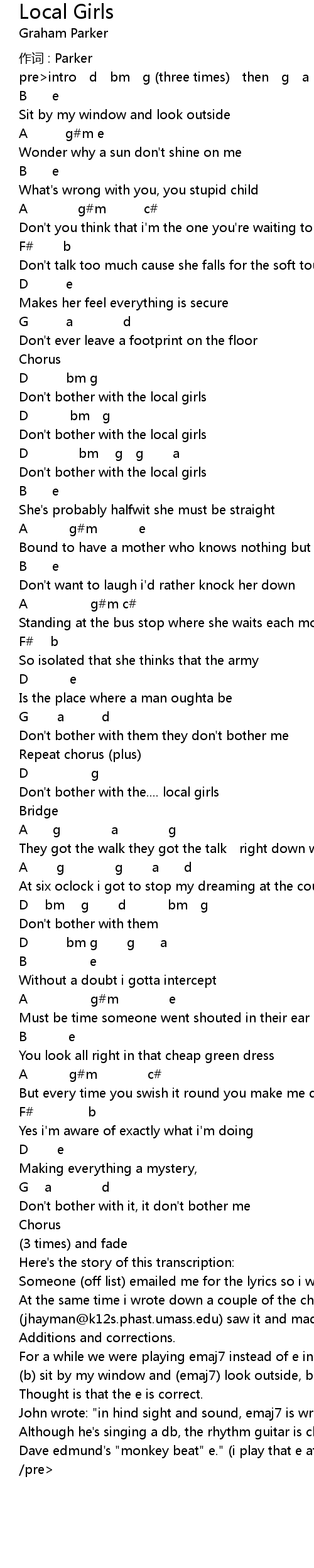 | Someone (off list) emailed me for the lyrics so i wrote them out and | |