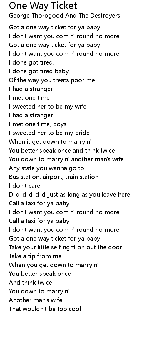 Got a one way ticket for ya baby |