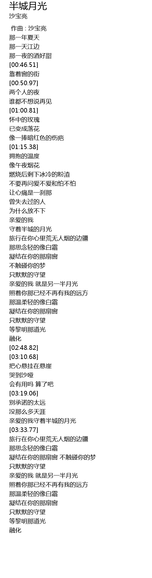 | [03:26.48] | 亲爱的我守着半城的月光 |