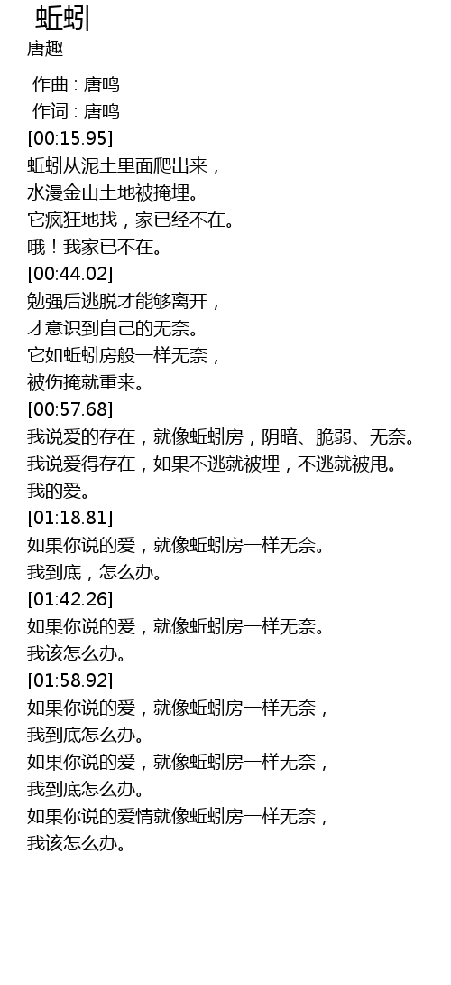 | [01:43.28] | 如果你说的爱,就像蚯蚓房一样无奈。 |