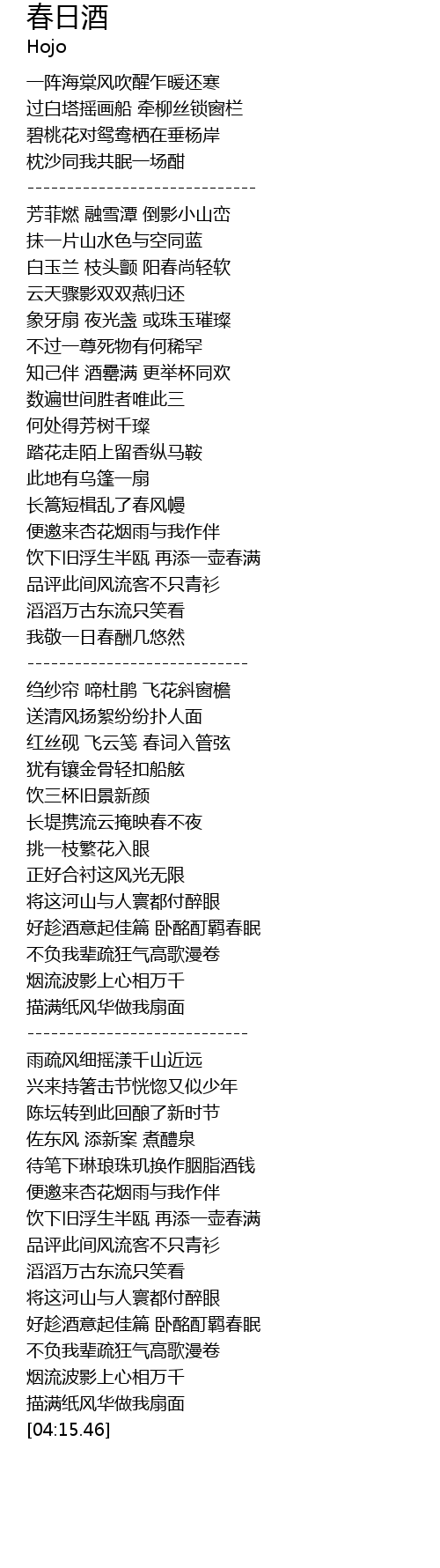| [03:48.88] | 好趁酒意起佳篇 卧酩酊羁春眠 |