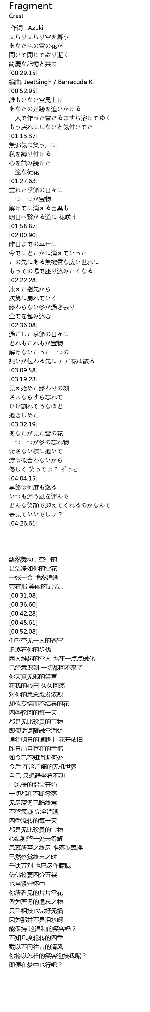| [03:39.21] | 一つ一つが冬の忘れ物 |