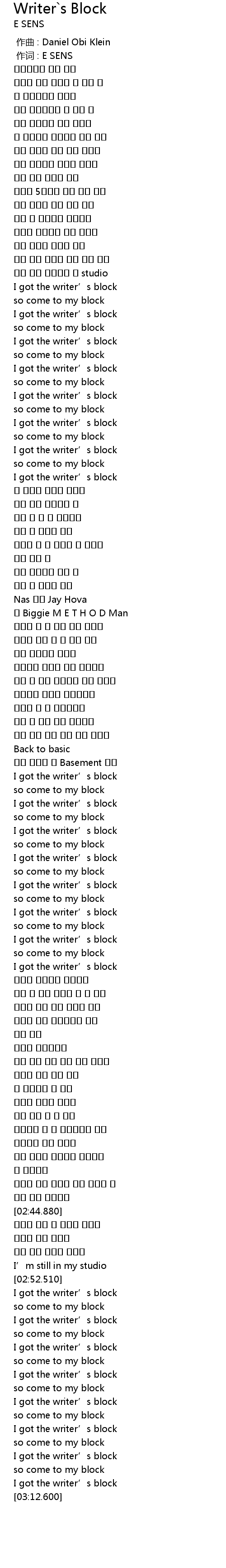 | [02:02.750] | I got the writer' s block |