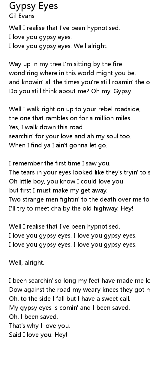 I love you gypsy eyes. Well alright. |
