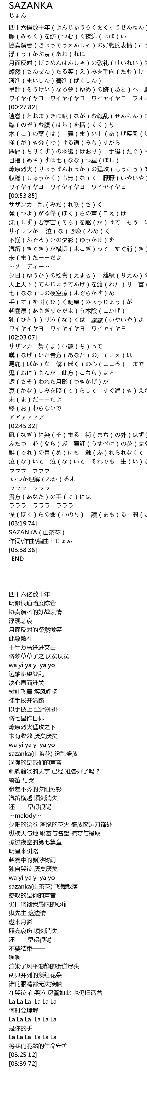 | [00:54.25] | サザンカ 乱(みだ)れ咲(さ)く |