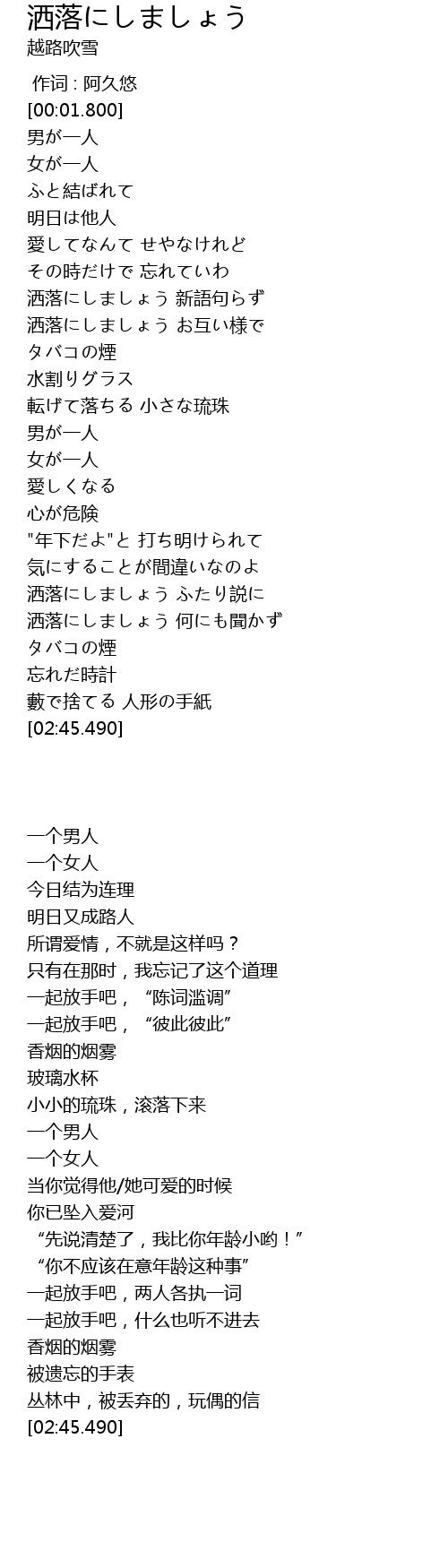 | [02:17.390] | 洒落にしましょう 何にも聞かず |