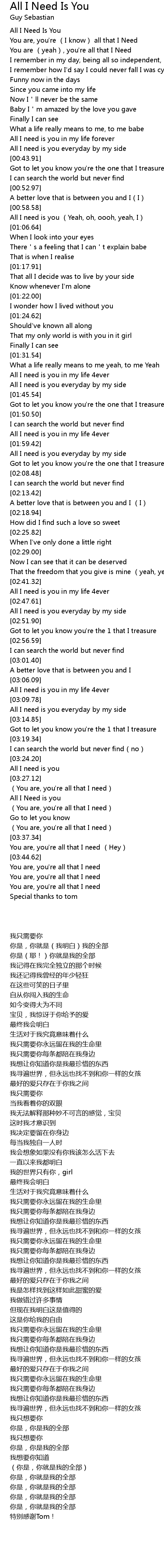 | [00:02.24] | You are, you're (I know) all that I Need |