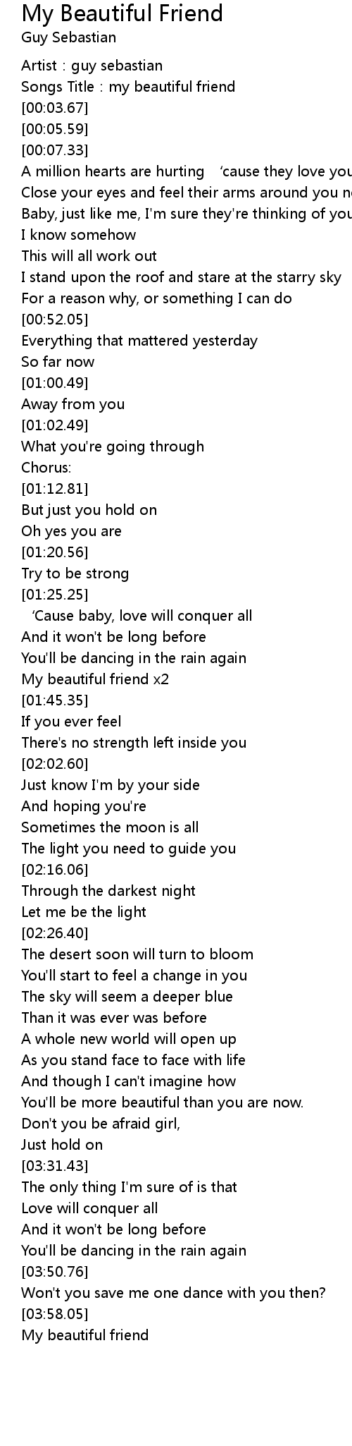 | [04:03.87] | My beautiful friend |