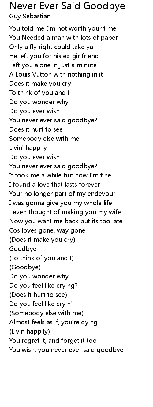 You never ever said goodbye? |