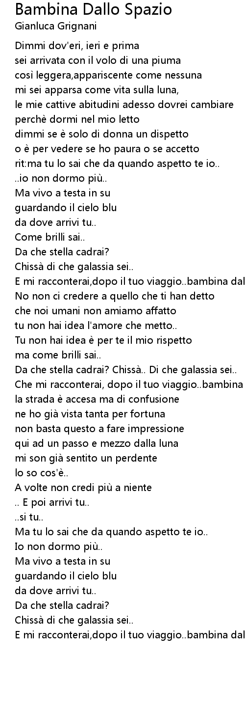 | Song | Bambina Dallo Spazio |