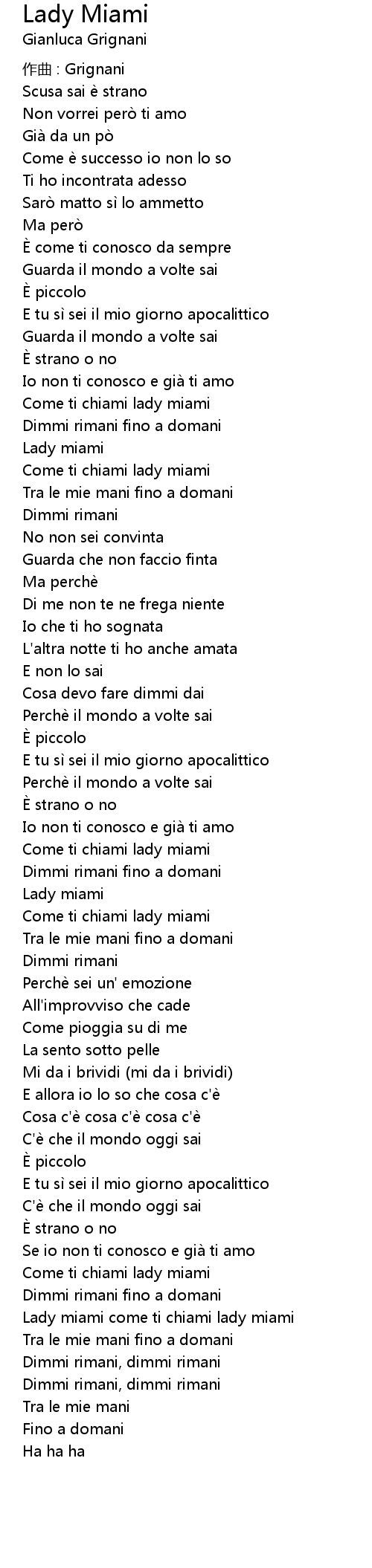 | Lady miami come ti chiami lady miami | |