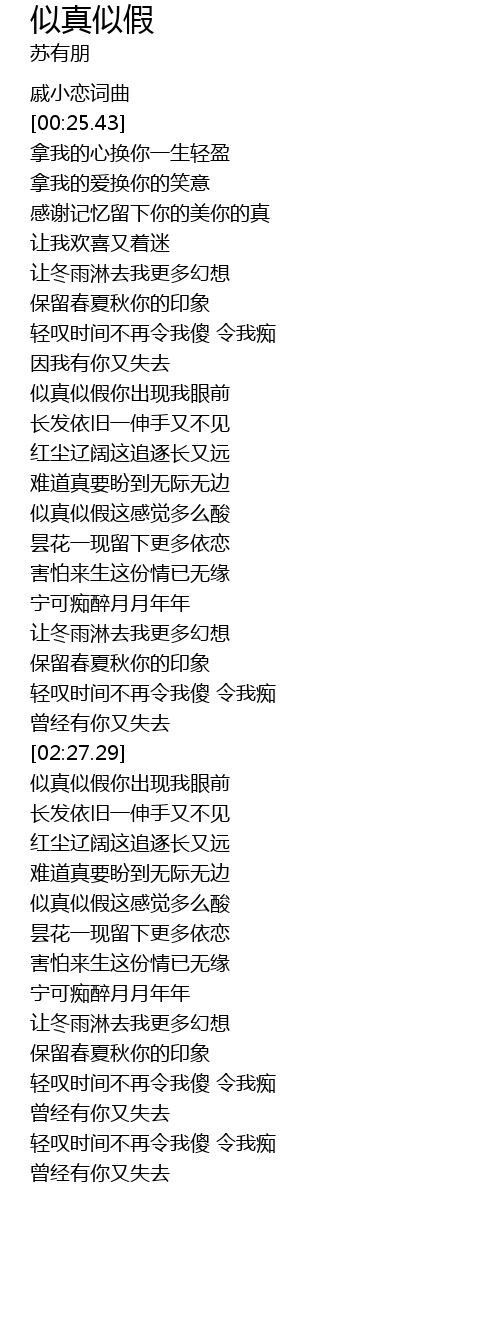 | [01:39.50] | 似真似假这感觉多么酸 |