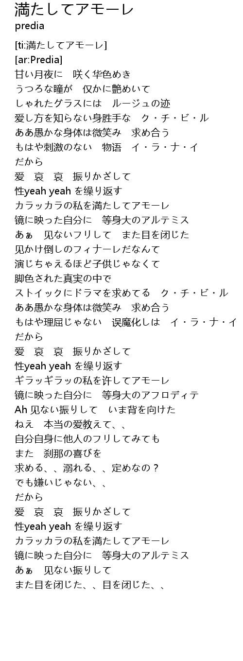 | [ti:満たしてアモーレ] | |