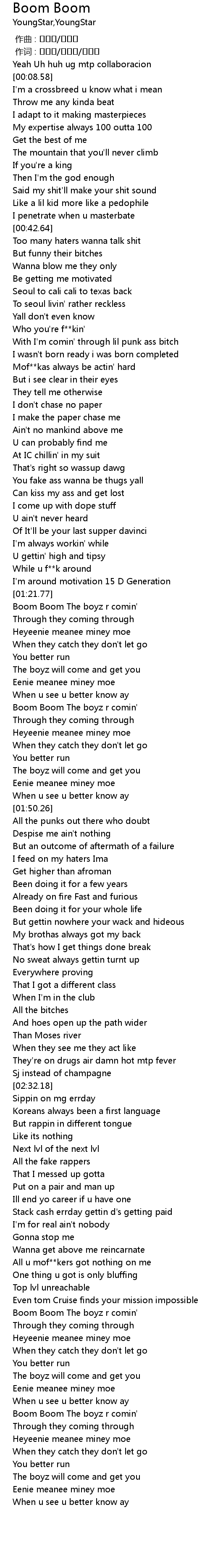 | [02:58.92] | Boom Boom The boyz r comin' |