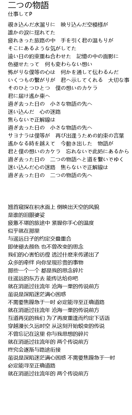 | [02:54.79] | 過ぎ去った日の 二つの物語の先へ |