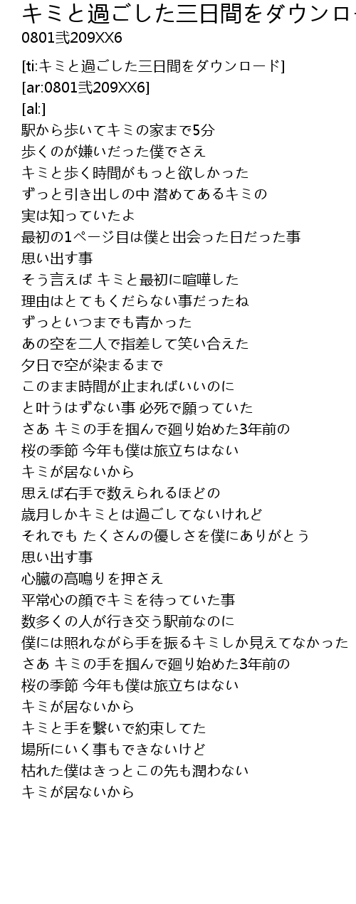 | [ti:キミと過ごした三日間をダウンロード] | |