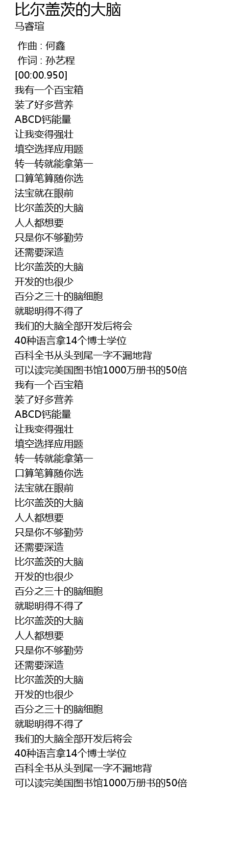 | [00:57.850] | 比尔盖茨的大脑 |