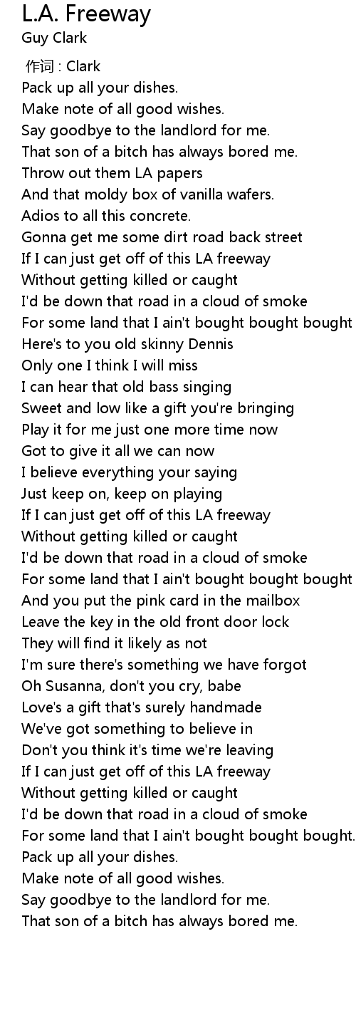 | [01:22.71] | If I can just get off of this LA freeway |