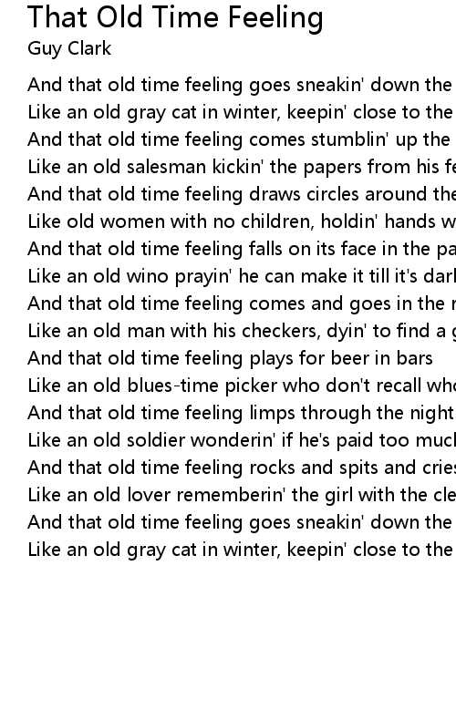 And that old time feeling comes stumblin' up the street |