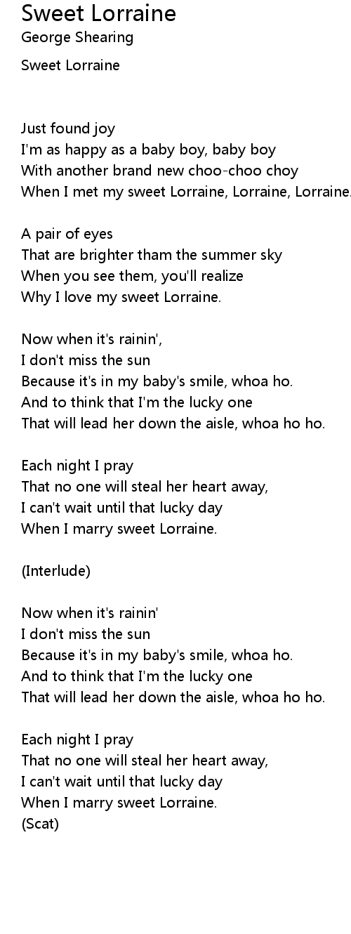 When I met my sweet Lorraine, Lorraine, Lorraine.