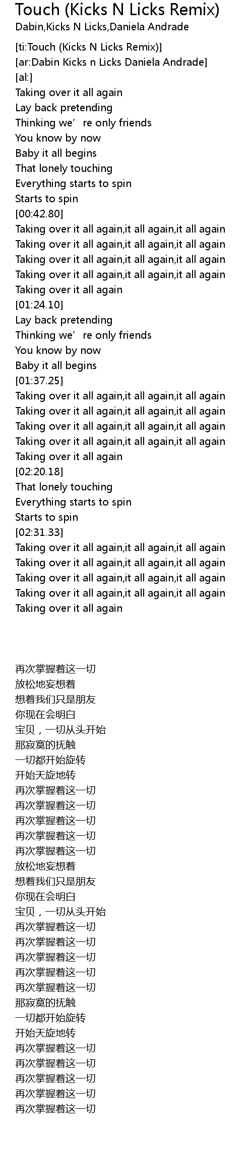 | [ti:Touch (Kicks N Licks Remix)] | |