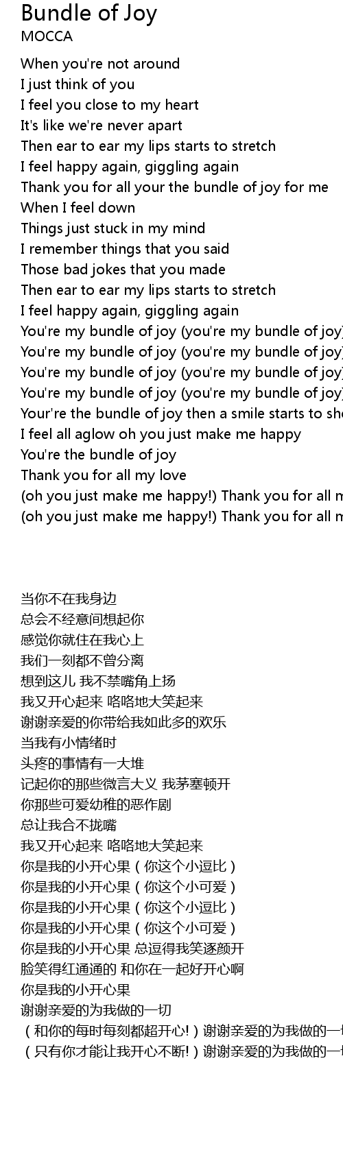 | [01:50.18] | Your're the bundle of joy then a smile starts to show |