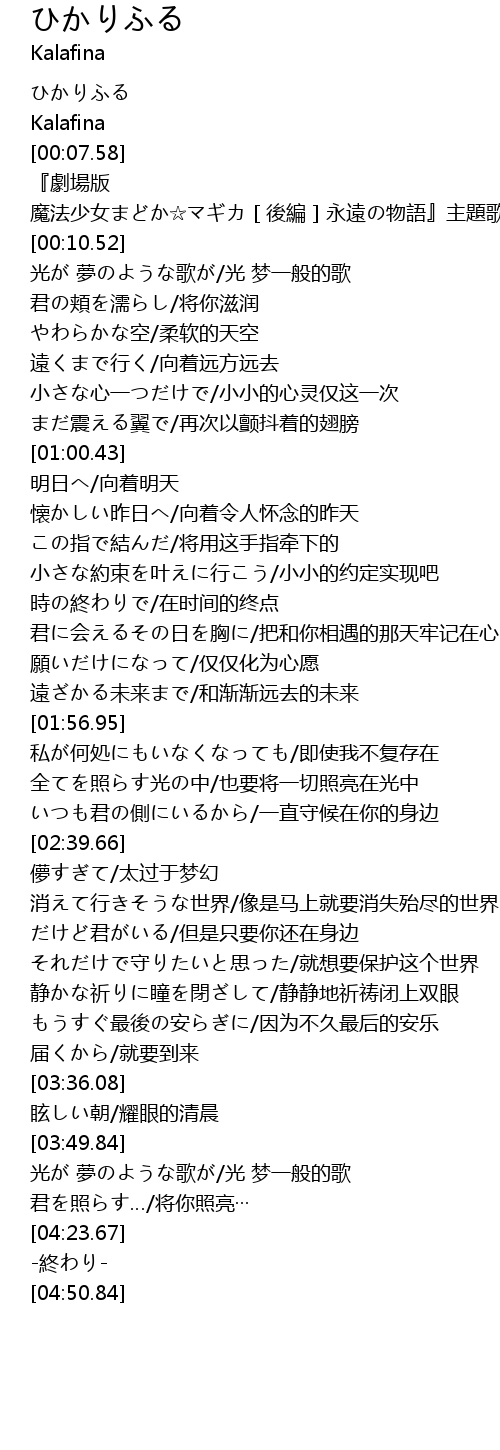 | [00:09.02] | 『劇場版 魔法少女まどか☆マギカ[後編]永遠の物語』主題歌 |