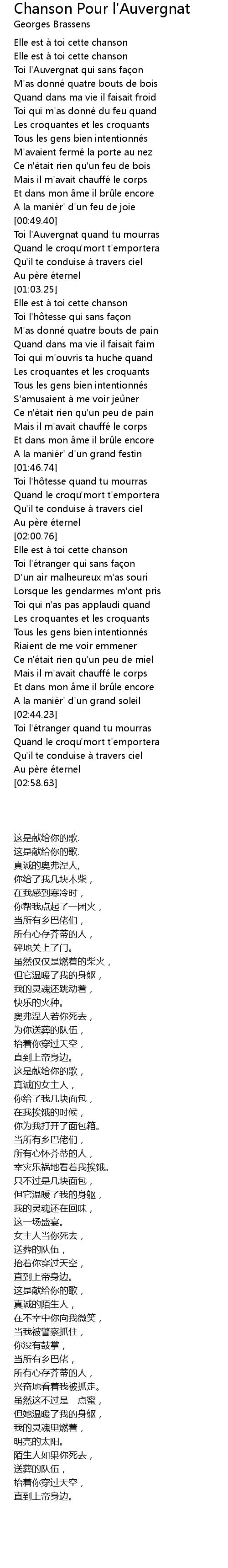 | [00:50.28] | Toi l'Auvergnat quand tu mourras |