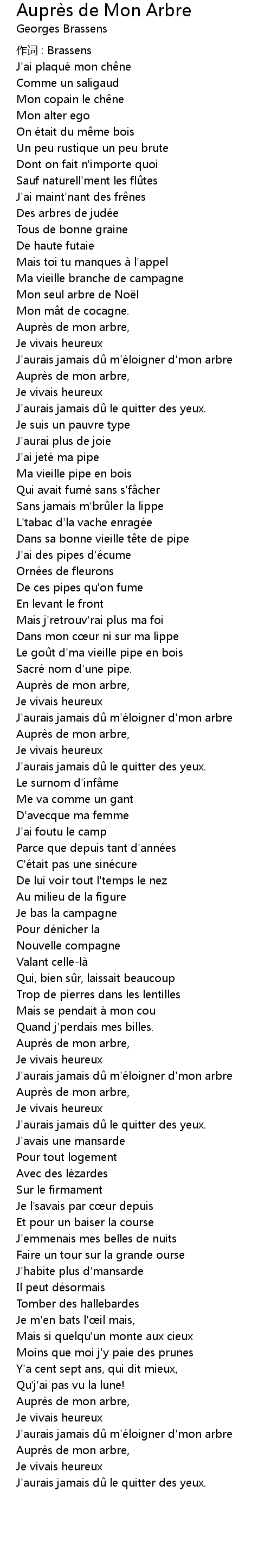 | J' aurais jamais d m'e loigner d' mon arbre | |