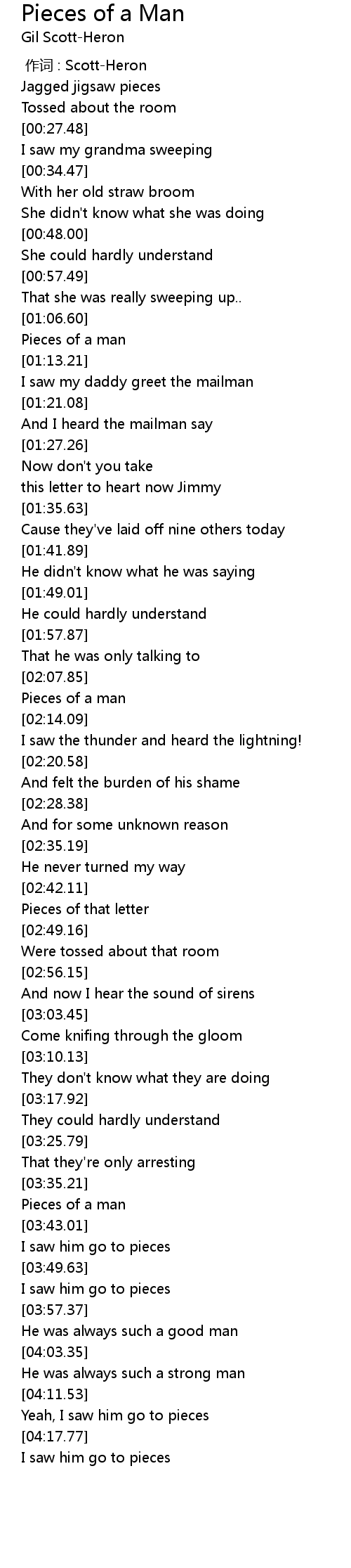 | [04:13.84] | Yeah, I saw him go to pieces |