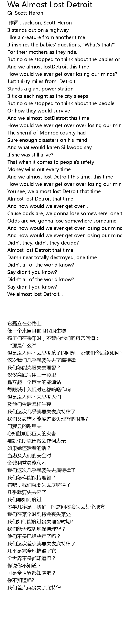 | Song | We Almost Lost Detroit |
