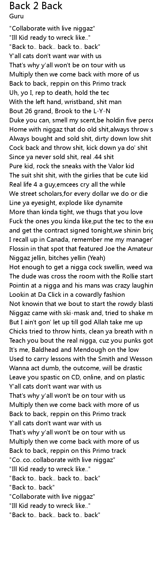 [00:40.49] Home with niggaz that do old shit,always throw shit