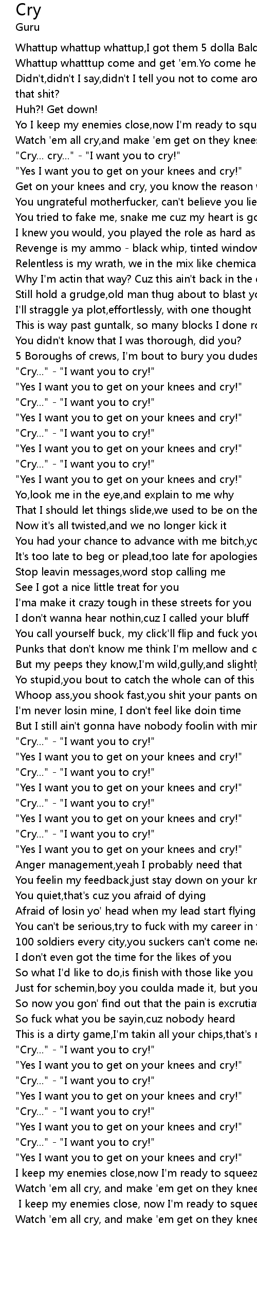 Watch 'em all cry,and make 'em get on they knees |
