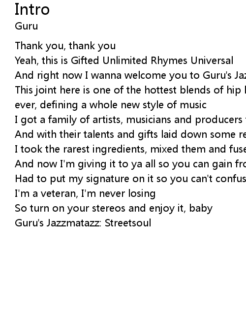 Yeah, this is Gifted Unlimited Rhymes Universal |