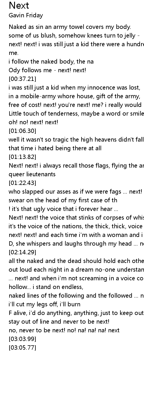 it's the voice of the nations, the thick, thick, voice of blood ... next! next! and each time i'm with a woman and i take her to |