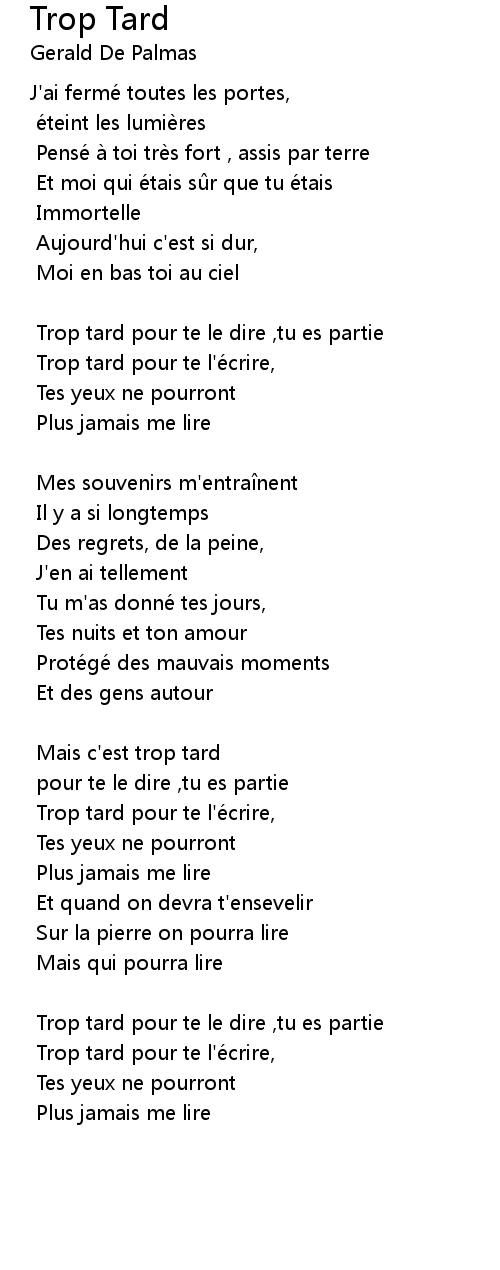| Song | Trop Tard |